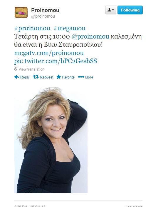 λόγους, δεν υπέκυψε στον πειρασμό!Aύριο, έρχεται καλεσμενη του Πέτρου Κωστόπουλου.Ο λόγος για τη Βίκυ Σταυροπούλου!